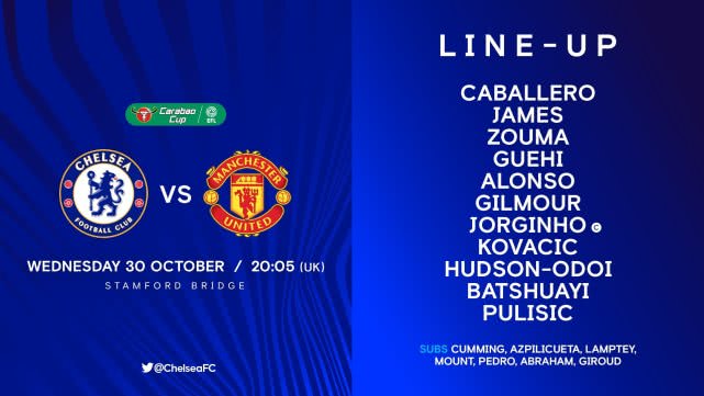 切尔西VS曼联首发:普利西奇出战 拉什福德领衔红魔