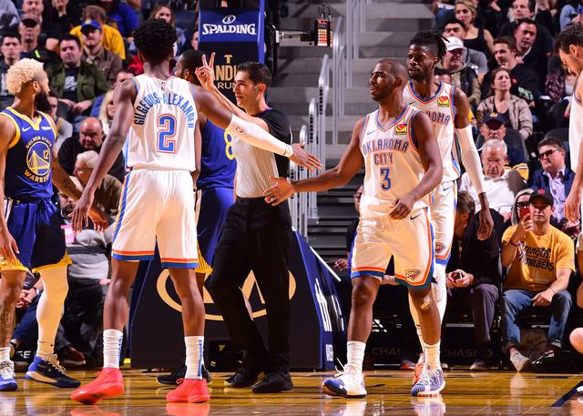 施罗德22+5保罗20+7+5 雷霆客场反转勇士