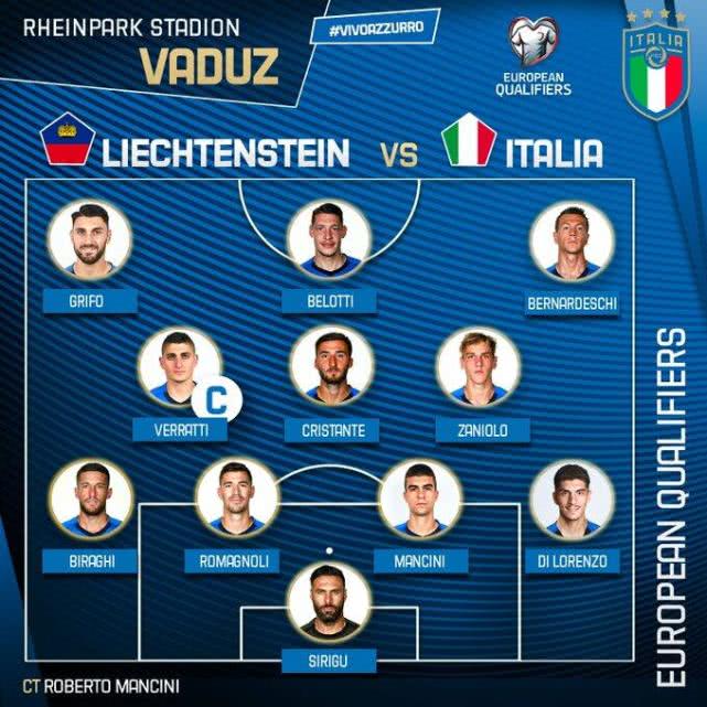 欧预赛意大利首发-紫贝贝+红贝贝 维拉蒂担任队长