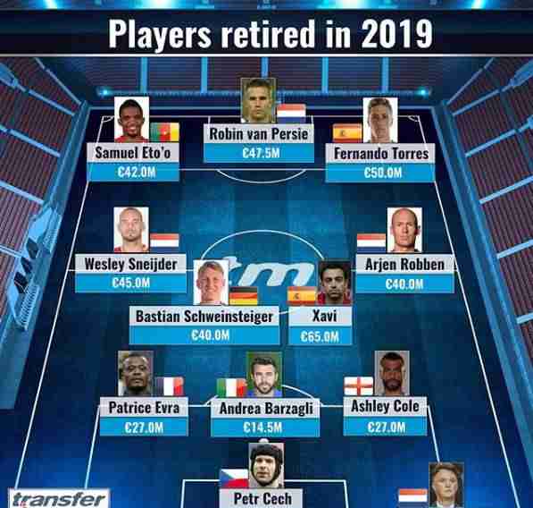 2019年退役球员最佳阵:哈维携托雷斯 范佩西在列